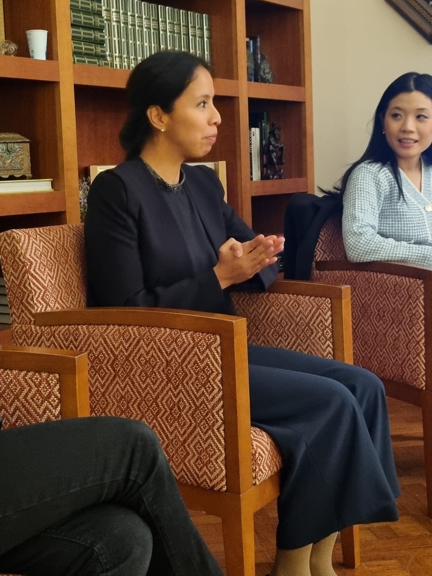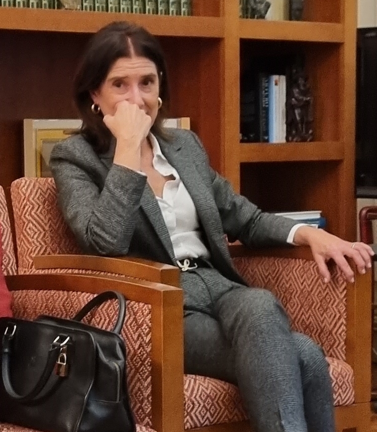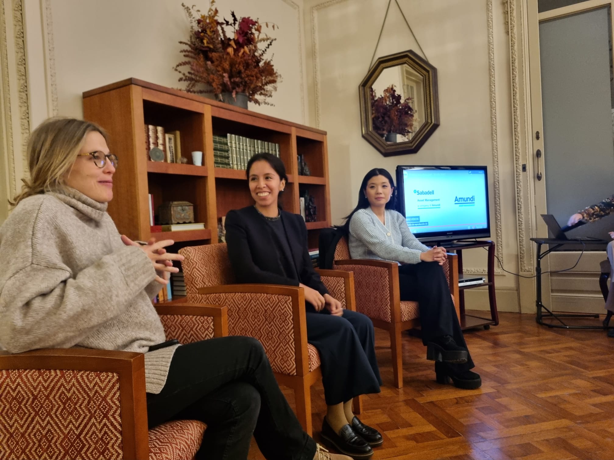 Encara que sembli difícil, en un ambient distès on les preguntes i respostes van fluir per «saber-ne més», l’Elisabeth Oter (Llicenciada en Matemàtiques per la UB i Màster per a instruments financers» per la UAB) i la Shi Ye Zhang (Llicenciada en Matemàtiques per la UPC), ens varen explicar la seva elecció d’estudis universitaris i el seu itinerari professional: la gestió de fons d’inversió, la protecció de dades i assessorament de les empreses, els «ciberatacs», el treball en equip, la cohexistència del treball presencial amb el teletreball i sobretot l’aportació dels trets femenins per millorar les empreses i els seus reptes professionals. La Mireia Garcia va saber gestionar les preguntes i respostes, en un tó trepidant. Gràcies a les tres.