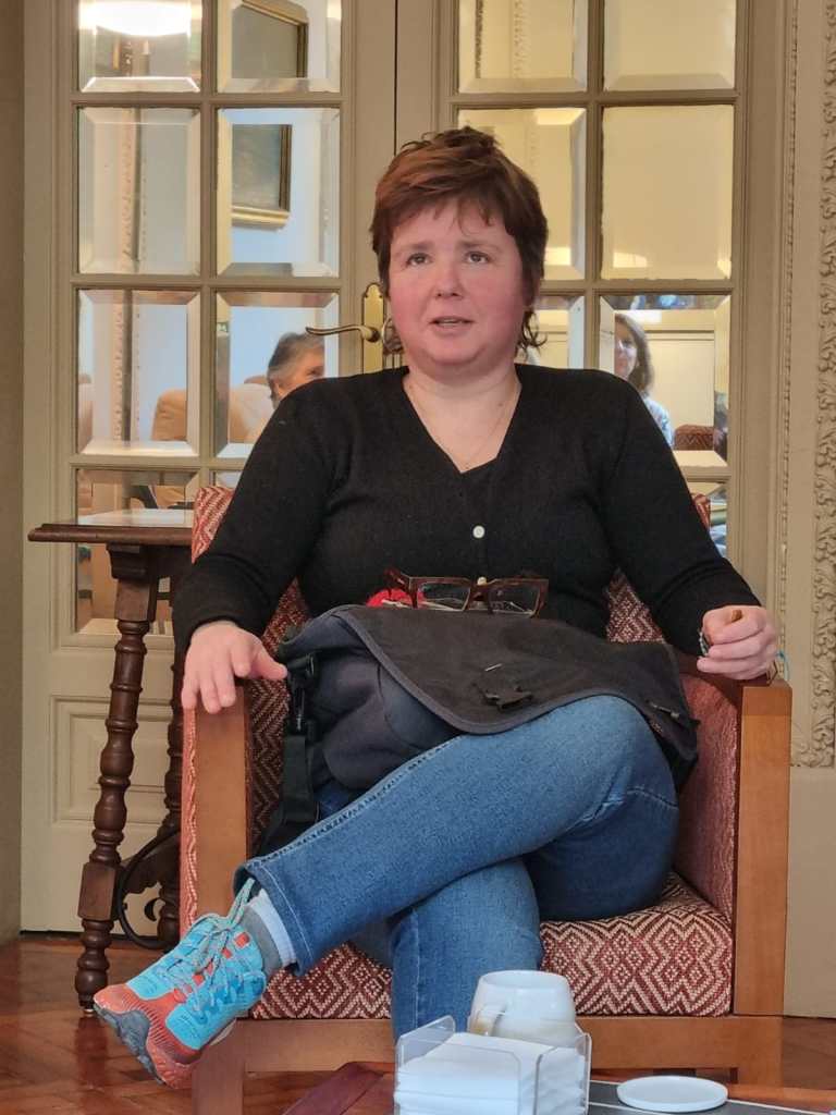 Nos abrió la mente, hablandonos de algunas de las culturas a las que pertenece… Nancy es hebrea y cuándo lo comenta aparecen siempre 3 preguntas obligadas: ¿eres judía? no, árabe; ¿musulmana? no católica; ¿de Belén?, no de Nazaret. De ascendencia libanesa, no conoce en persona a muchos de sus familiares porqué no puede entrar en Líbano por ser hebrea. Una vida difícil que no deja paso al victimismo: el amor por el trabajo, las personas y los lugares hacen de su día a día un canto digno de aprender a tararear.
